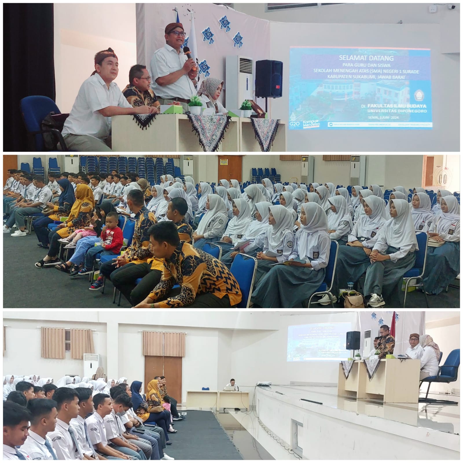 Senin, 3 Juni 2024 Fakultas Ilmu Budaya menerima kunjungan dari SMA N 1 Surade di AULA GSG. Kegiatan kunjungan ini diterima langsung oleh Prof. Dr.